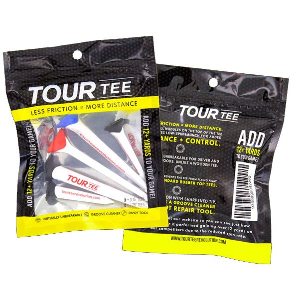 The Tour Tee Combo pack features the Tour Tee Original and TourTee Mini. The Original is designed for tee shots with your driver while the Mini is perfect for woods, hybrids, and irons. 3 Long and 2 short tees